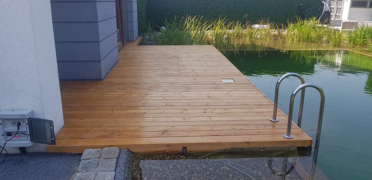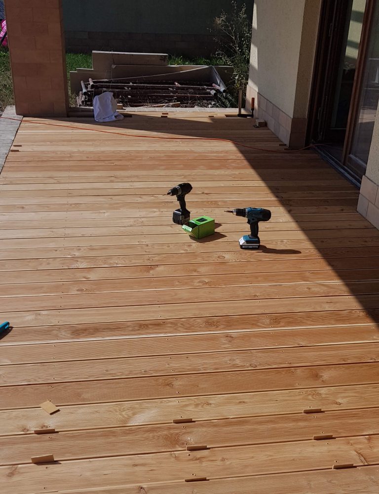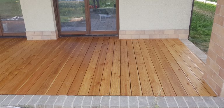 Tarasy drewniane, z modrzewia syberyjskiego, deska gładka lub ryflowana.
